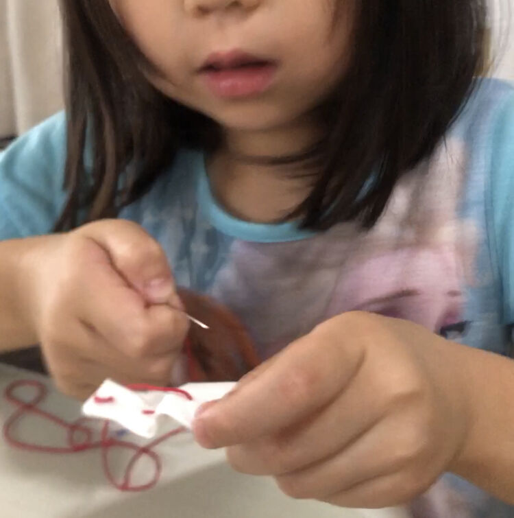 2025/07/11 5歳!!はじめての裁縫 下の写真が慣れないのを物語ってる🤣🤣🤣保育園からの課題でハンカチの端を縫うというもの「自分でやる!」というのでやらせてたのですが縫ったあと針を引っ張りすぎて、糸が抜けちゃうんですよね…🥲それにイライラしてるので助言したのです”糸の先を舐める”これを見せた後のジージョの顔w!!潔癖症なところがあるジージョさん🧒🏻まさかの行動でした🤣狙って狙って〜ブッ刺す!!! < 前の記事次の記事 > コメント コメントフォーム 名前 コメント 記事の評価 リセット リセット 顔 星 情報を記憶 コメントを投稿する